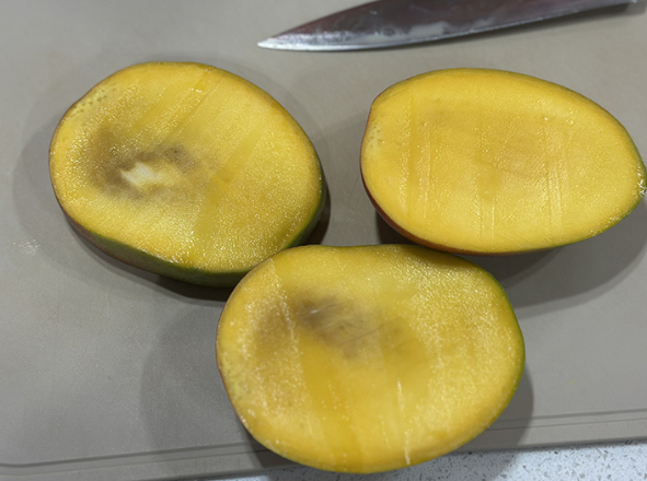 1단계: 애플망고 세척 & 중심 씨앗 확인