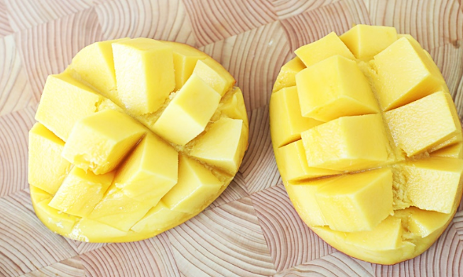 예쁘게 자른 애플망고, 다양한 요리에 활용해 보세요! 맛은 물론, 비주얼까지 up 시켜준답니다!