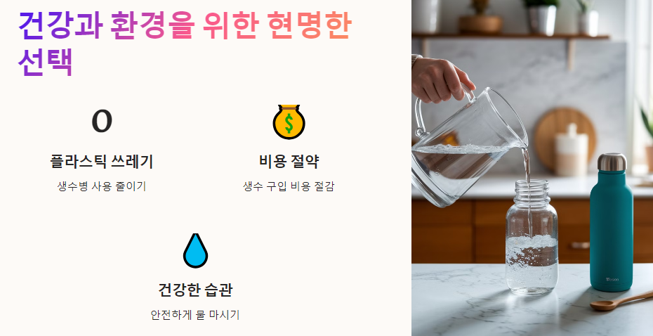 "혹시 아직도 물 사 드시나요? 📦 매번 무거운 물통 나르는 것도 힘들고, 플라스틱 쓰레기 걱정도 되시죠? 🤔 집에서 간편하게 끓여 마시는 수돗물, 정말 안전할까요? 수돗물 끓여먹기에 대한 모든 궁금증을 속 시원하게 해결해 드립니다! 끓인 물의 장점, 단점, 올바른 끓이는 방법까지! 똑똑하게 물 마시는 습관, 지금부터 함께 알아봐요!"