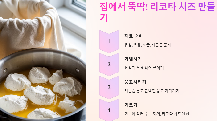 4. 집에서 뚝딱! 리코타 치즈 만들기 🧀