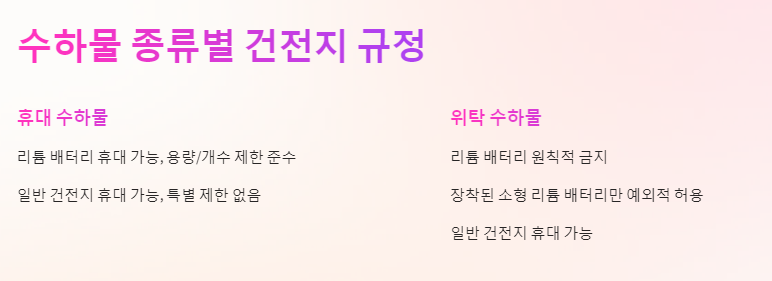 ⚠️ 다시 한번 강조: 리튬 배터리는 위탁 수하물 절대 금지! 휴대 수하물로만 휴대하세요! 🎒