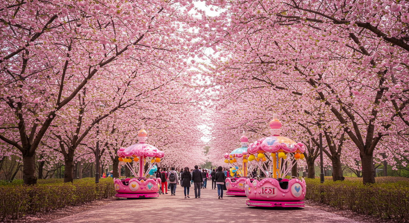 2️⃣ 🎡 놀이기구 & 벚꽃 콜라보, 스릴과 낭만을 동시에: