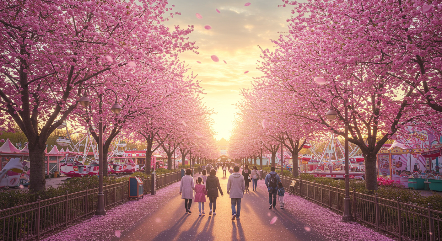 ✔️ 주요 프로그램: 벚꽃길 산책, 놀이기구 탑승, 테마가든 관람, 문라이트 퍼레이드, 불꽃놀이, 다양한 공연 및 이벤트