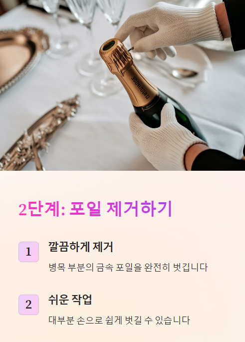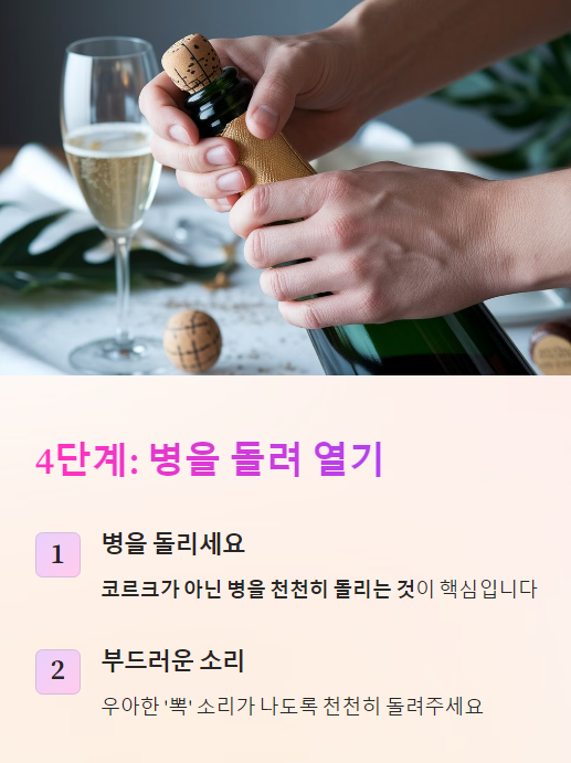 📌 한마디로, 우아한 샴페인 오프닝은 '터지지 않게' 따는 것이 포인트!