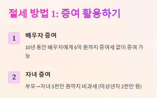 ✔ 사전 증여 & 절세 전략을 세우면 상속세 부담을 줄일 수 있음!