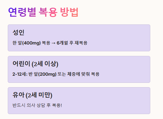 ✅ 보통 한 알(400mg) 복용 → 6개월 후 다시 복용
