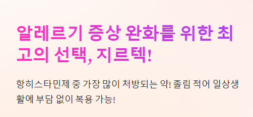 👉 지르텍은 1세대 항히스타민제보다 졸음 부작용이 적어 낮에도 복용 가능!