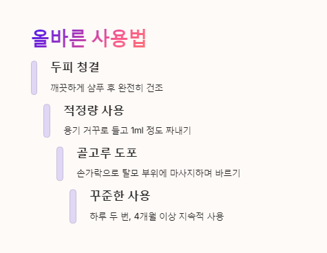 로게인폼은 꾸준히 사용하는 것이 중요합니다. 다음은 로게인폼의 올바른 사용 방법입니다.