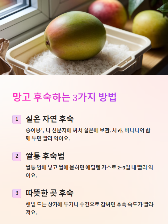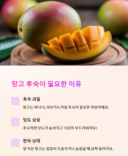 📌 망고를 더 달고 부드럽게 먹고 싶다면, 적절한 후숙이 필수입니다!