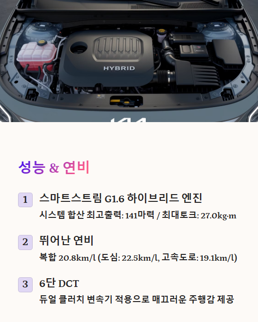✔ 친환경적인 하이브리드 시스템으로 연료 효율을 극대화하면서도 주행 성능까지 만족