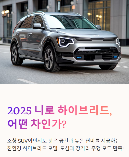 📌 2025 니로 하이브리드는 최고의 연비와 실용성을 제공하는 가성비 좋은 하이브리드 SUV입니다!