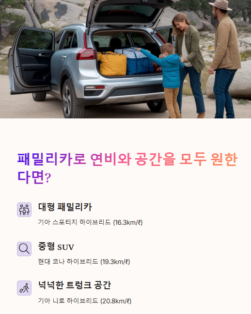 🚗 2️⃣ 패밀리카로 연비와 공간을 모두 원한다면?