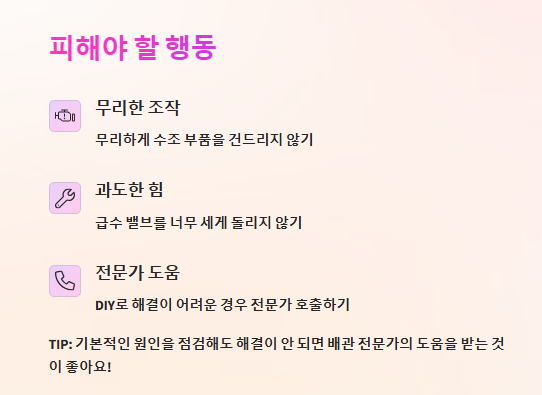 👉 TIP: 기본적인 원인을 점검해도 해결이 안 되면 배관 전문가의 도움을 받는 것이 좋아요!