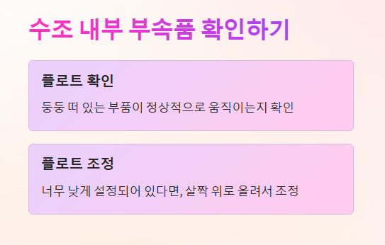 - **플로트(둥둥 떠 있는 부품)**가 정상적으로 움직이는지 확인
