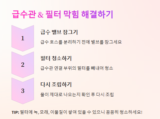 3️⃣ 급수관 & 필터 막힘 해결 (이물질 제거)