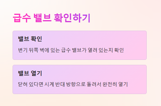 1️⃣ 급수 밸브 확인 & 수압 문제 해결