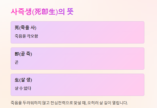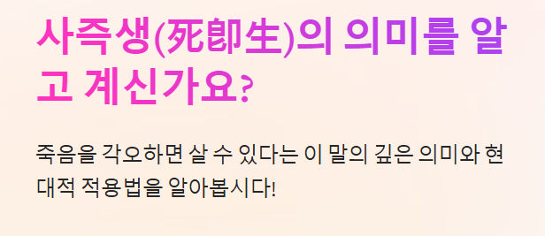 ✔ "사즉생이란 무슨 뜻일까?"