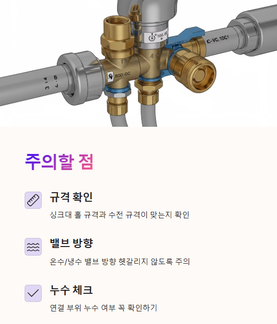 싱크대 수전 교체 시 주의할 점