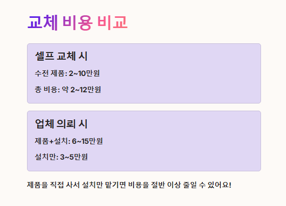 업체에 맡길 경우의 교체 비용까지 꼼꼼하게 알려드릴게요.