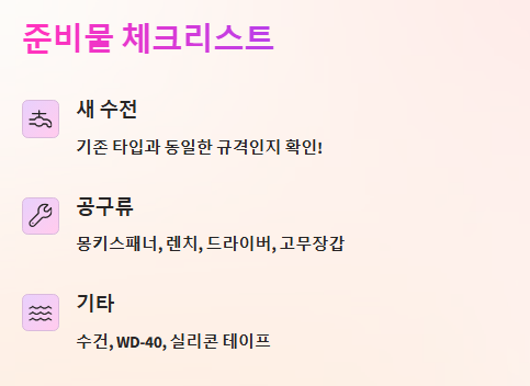 👉 TIP: 교체 후에는 수전 작동을 몇 분간 체크해서 누수 유무를 꼭 확인하세요!