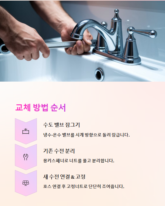 👉 TIP: 교체 후에는 수전 작동을 몇 분간 체크해서 누수 유무를 꼭 확인하세요!