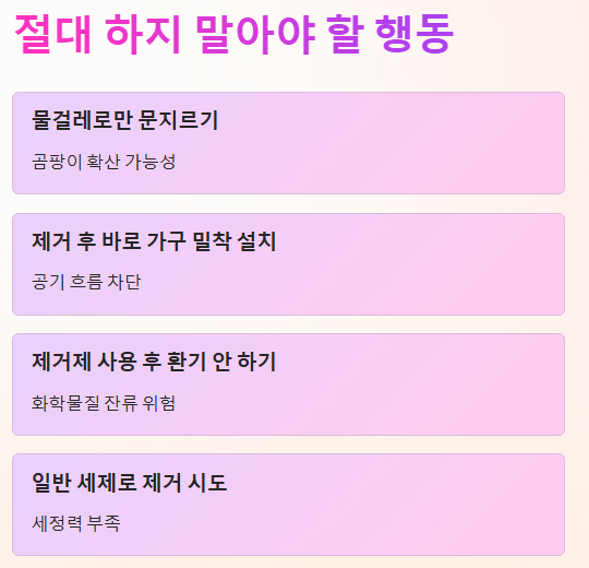 👉 TIP: 곰팡이는 한 번 생기면 퍼지기 쉬우니, 제대로 제거하는 것이 중요해요!