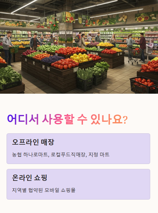 ※ 사용처는 농식품바우처 공식 홈페이지 또는 각 지자체 안내문 참고!
