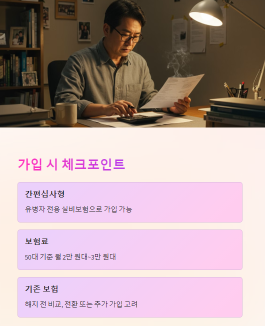→ 50대는 아직 가입 가능하지만 심사 기준이 까다로울 수 있음