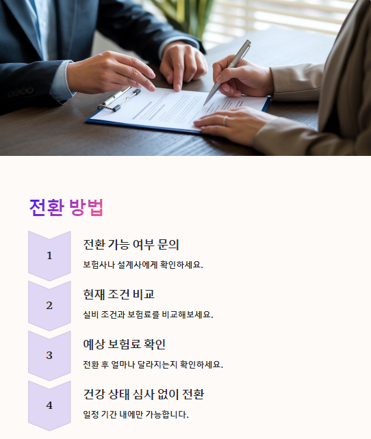 1. 보험사 또는 설계사에게 전환 가능 여부 문의