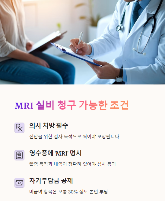 → 건강검진이나 단순한 개인 요청으로 찍은 MRI는 실비 청구 ❌
