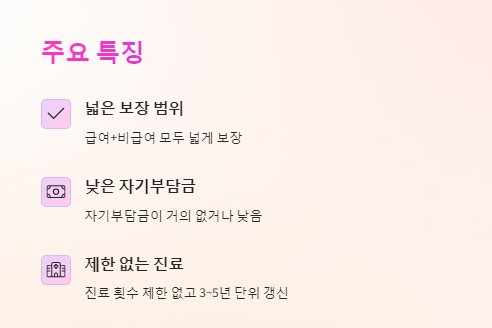 • 급여 + 비급여 모두 넓은 범위 보장