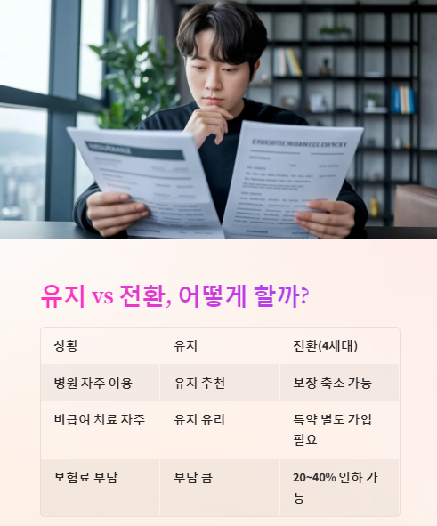 | 병원 자주 이용 | 유지 추천 | 전환 시 보장 축소 가능 |