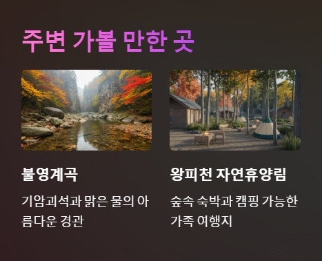 ✔ 근처 계곡과 휴양지도 함께 즐길 수 있어 1박 2일 여행 코스로 딱!