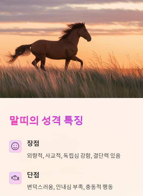 • 말띠끼리: 너무 비슷해서 오히려 충돌할 수도 있음