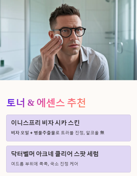 여드름 피부는 피지 조절 + 진정 + 수분 공급이 핵심이에요!