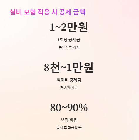 예를 들어 응급실 진료비가 6만원 나왔다면, 공제금 1만원을 제외한 5만원 중 약 80~90%를 보험금으로 돌려받을 수 있습니다. (자기부담률은 가입 상품과 갱신 조건에 따라 다를 수 있음)