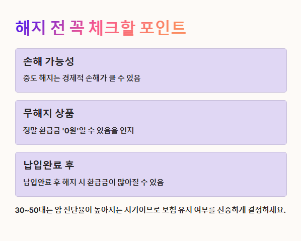 - 다른 보험으로 대체할 계획이라면 신규 가입 후 해지하는 게 안전
