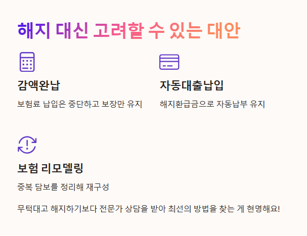 - 다른 보험으로 대체할 계획이라면 신규 가입 후 해지하는 게 안전