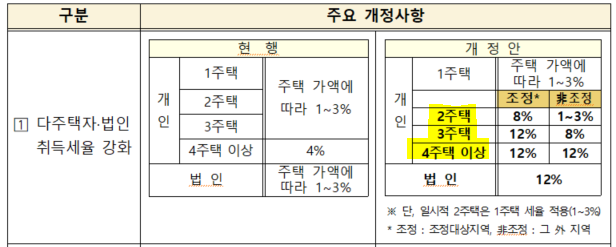 . 또한, 현재와 제안된 다세대 주택의 세율을 비교한 표