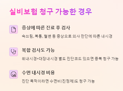 청구 가능 여부는 단순히 '내시경을 받았는가'가 아니라, 왜 내시경을 받았는지, 어떤 방식으로 진행됐는지에 따라 달라집니다.