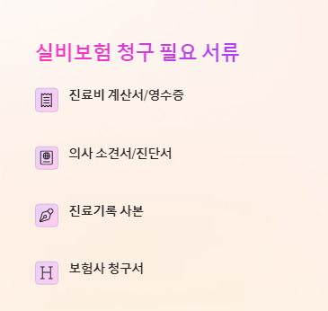 - 보험사 청구서 (앱/홈페이지 또는 서면)