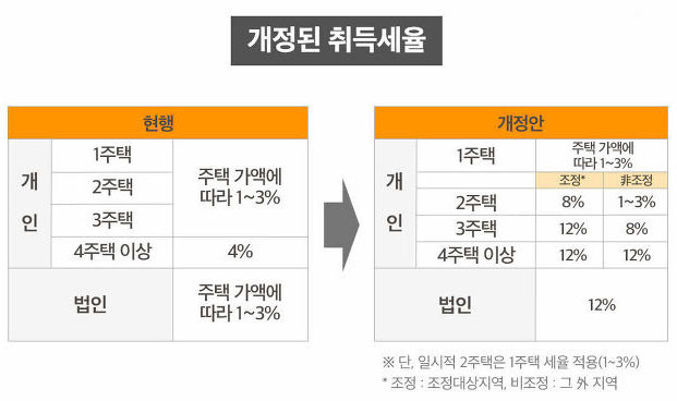 . 또한, 현재와 제안된 다세대 주택의 세율을 비교한 표