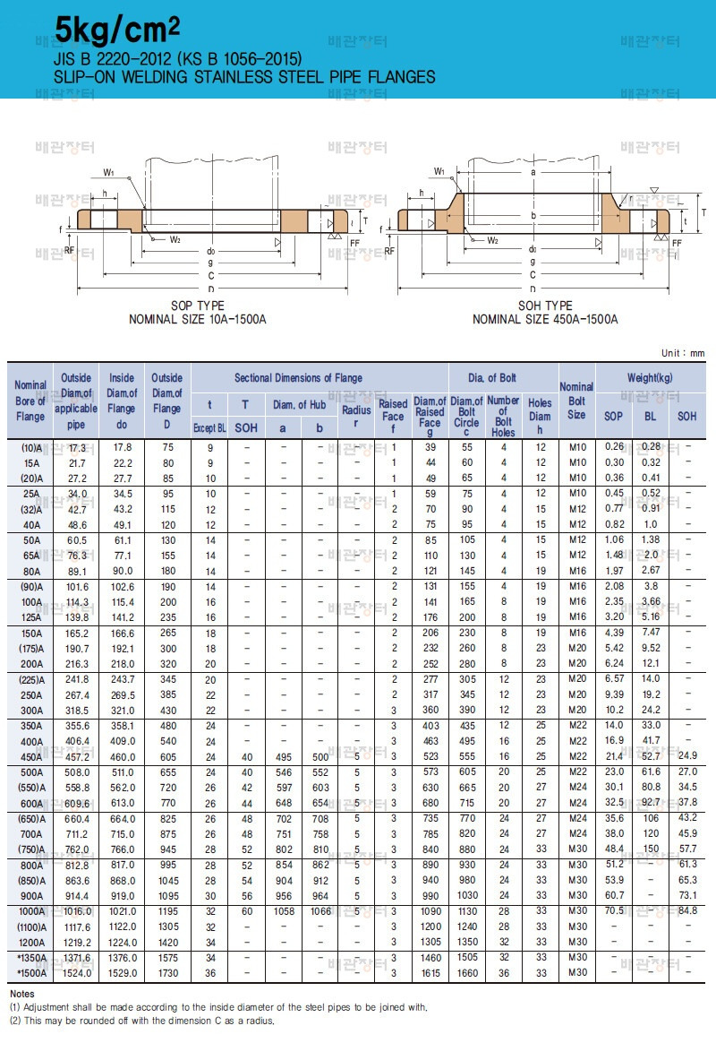 - 두께 : 플랜지의 두께는 크기에 따라 다르며, 일반적으로 5mm에서 30mm까지 다양합니다.