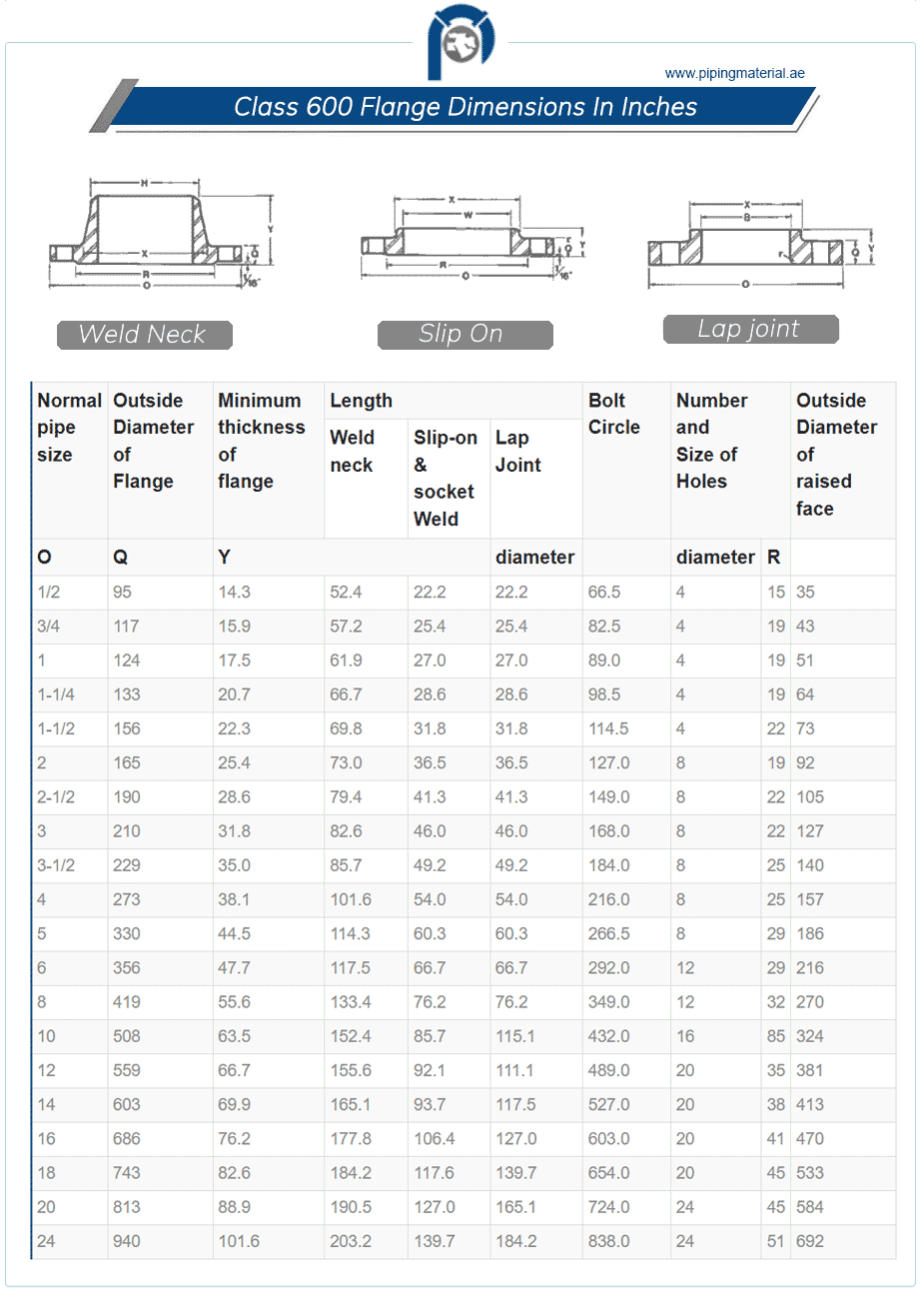 또한, 600LB 플랜지는 다음과 같은 주요 치수를 가집니다: