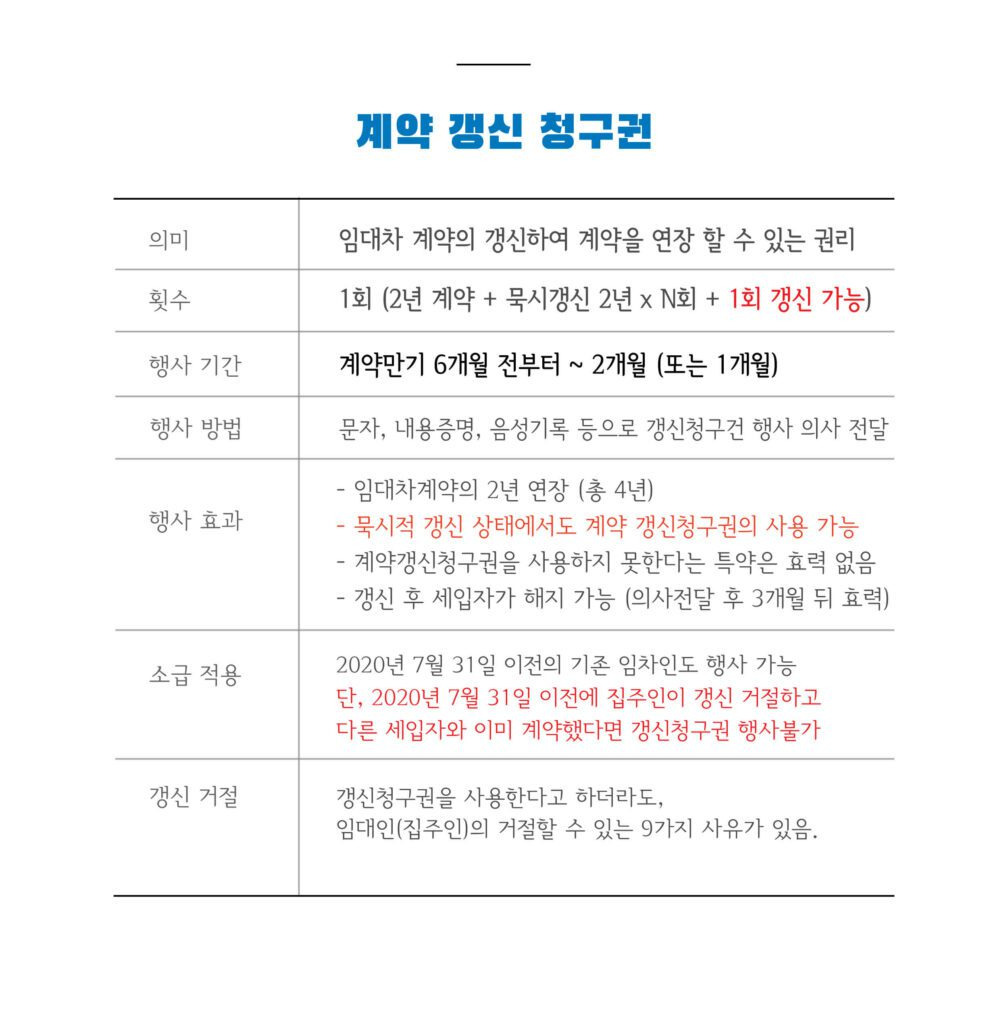 • 계약갱신청구권은 기본적으로 한 번 행사할 수 있으며, 이후에는 새로운 계약을 체결해야 합니다.