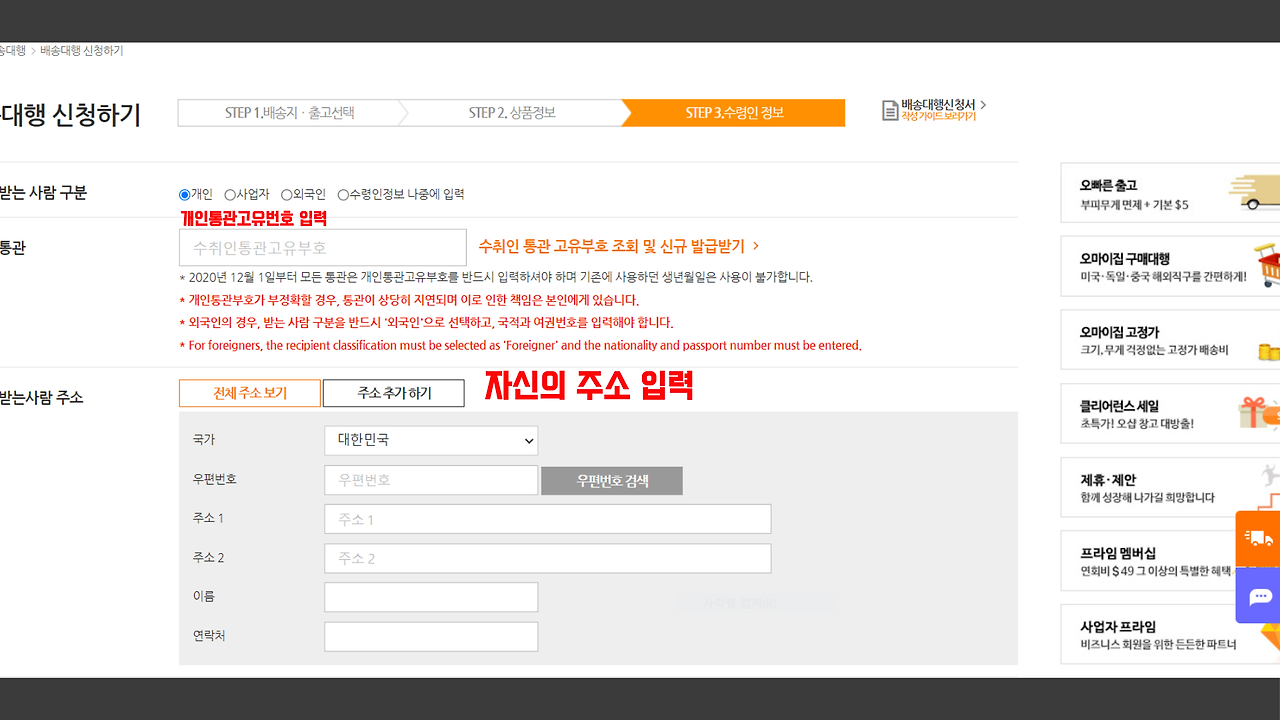 - 배대지 사이트 가입 : 원하는 배대지 사이트에 접속하여 회원가입을 합니다.