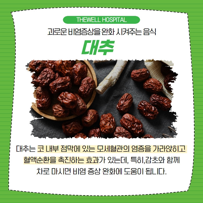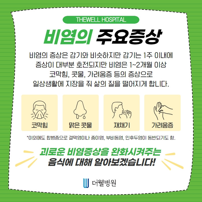 비염은 만성적으로 이어질 수 있지만, 적절한 관리와 좋은 음식을 통해 증상을 완화할 수 있습니다. 만약 증상이 심각하다면 전문의를 찾아 상담하고 치료를 받는 것이 중요합니다.