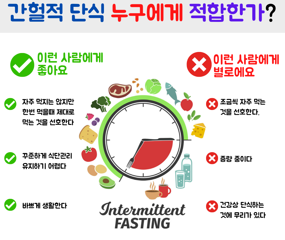 반면, 간헐적 단식이 적합한 사람들은 다음과 같습니다.