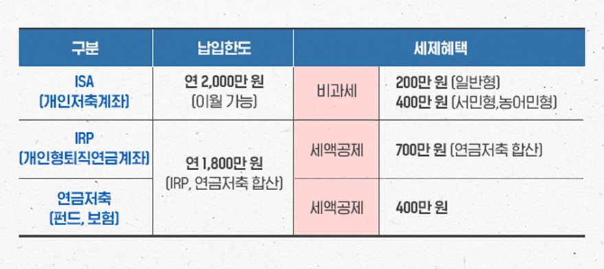 태그: #비과세종합저축 #ISA #연금저축 #연금보험 #재정관리 #세금혜택 #투자상품 #노후준비