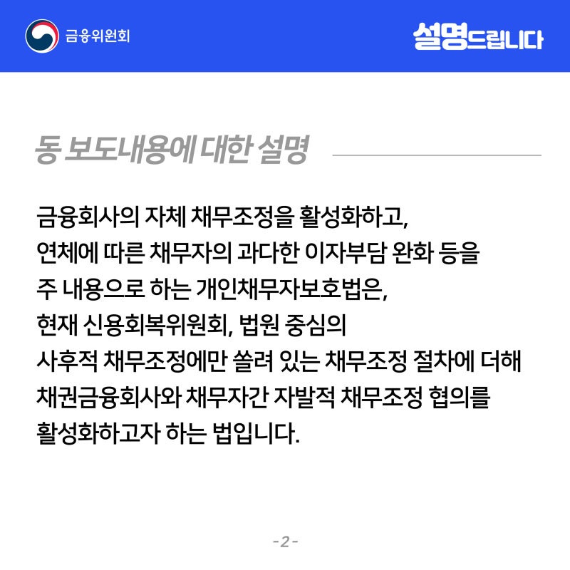 태그 : #개인채무자보호법 #채무자보호 #금융회사 #채무조정 #법률정보